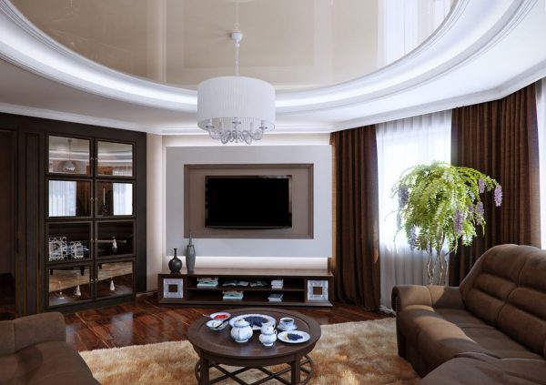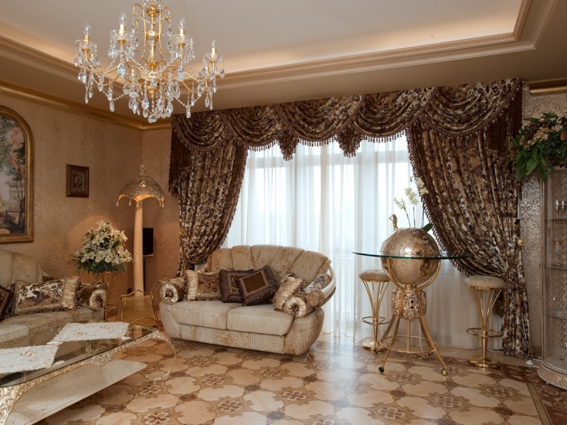 Как и дизайн другой комнаты, интерьер гостиной подбирается исходя из функциональности помещения. В гостиной люди проводят продолжительное время, поэтому комната должна быть уютной и комфортной. Здесь и вступают в игру коричневые шторы различных оттенков. Они могут придавать пространству в гостиной различную атмосферу: интимный и спокойный характер помещения или же яркий праздничный вариант.