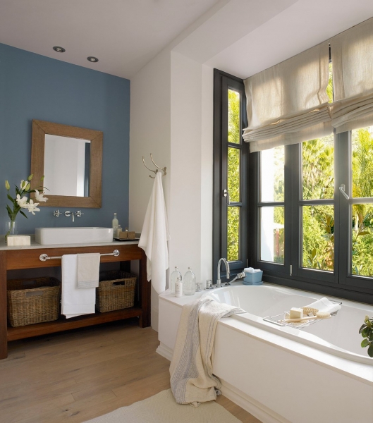 На заметку: Обратите внимание, что при расположении ванны под окном, проем необходимо утеплить, чтобы избежать сквозняков и слишком низких температур в холодное время года.