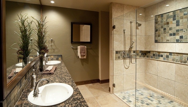 Тон плитки для оформления стен и пола имеет большое значение. Как уже говорилось выше, материалы для облицовки лучше выбирать светлых оттенков. Например, прекрасно подойдёт бежевый или кремовый цвет. Не менее важен дизайн самой плитки. Лучше всего, если она будет с вертикальным расположением элементов или зеркальная. Кроме того, плитку нужно выбирать небольшого размера.
